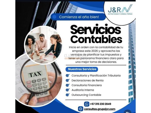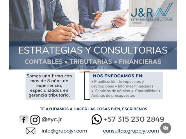 Asesoría Contable, Tributaria y de Revisoria Fiscal , Elaboración de Medios Magnéticos, Analisis Financiero, Elaboración declaraciones de renta persona jurídica y natural, Contabilidad Mensual, Desatrasos Contables, Reduccion de impuestos usando estrategias tributarias y contables, 3152302849 info@grupojyr.com https://consultas.grupojyr.com/